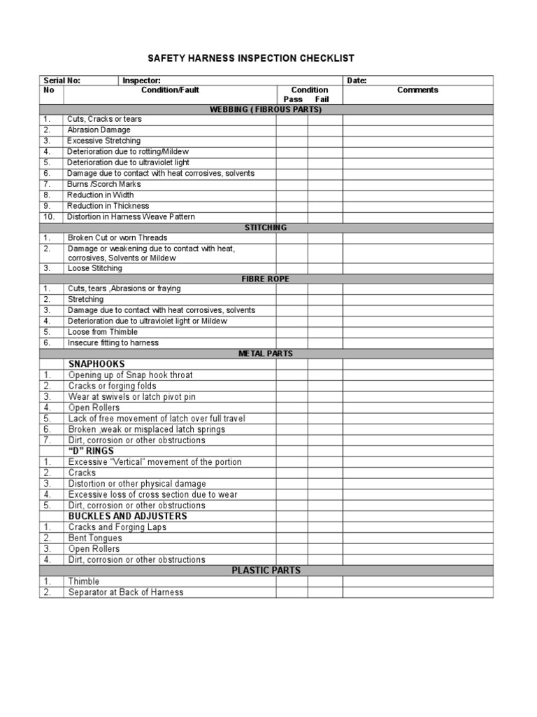 Harness Inspection Template / Webstore.ansi.org has been visited by 10k+ users in the past month. How can i check my full body harness? •check tag for date of manufacture and remove from service if past adopted service life policy Make sure to check the label of each to identify the type of. Qualification and verification testing of fall protection products Download standards for fall protection.